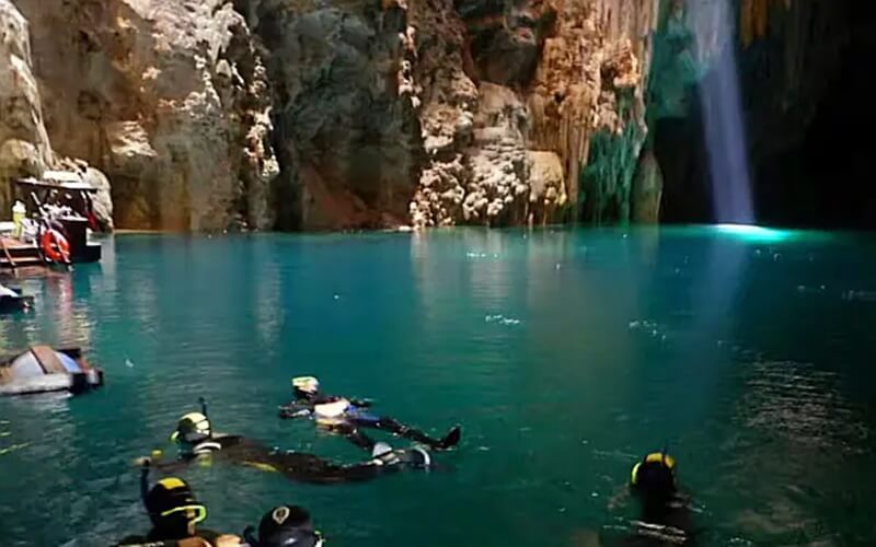 A iluminação natural que entra pela abertura da caverna cria reflexos azulados na água, enquanto o ambiente interno mantém temperatura estável ao longo do ano. O local combina beleza geológica com características ideais para atividades aquáticas controladas, tornando-se uma das cavernas alagadas mais conhecidas da região.